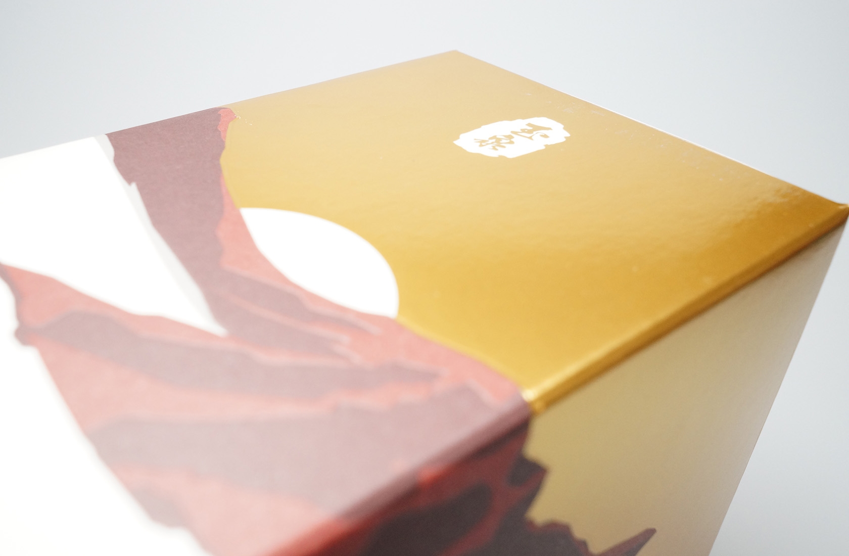 酒盒,燙金及並兩次打凸產生製造出層次感,2特別色+1原色(黑色)印刷。
